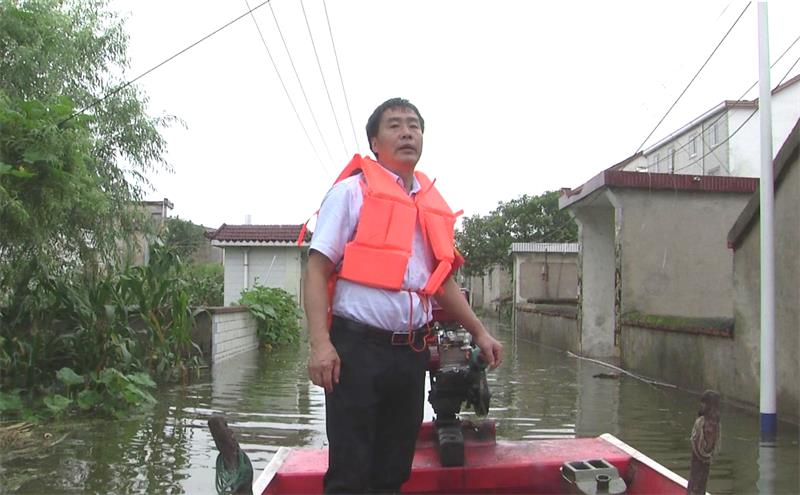 金神鎮(zhèn)許咀村地處嬉子湖畔,持續(xù)強(qiáng)降雨導(dǎo)致低洼處被洪水淹沒,320名村民已經(jīng)提前轉(zhuǎn)移。為防止村民私自返家,該村黨總支書記許小平每天駕船巡查。 7月11日下午,記者跟隨許小平開始巡查。由于洪水漫堤,趙汝墩圩潰破,圩內(nèi)一片汪洋。低處村莊洪水已經(jīng)進(jìn)屋,上漲到圍墻一半的位置。