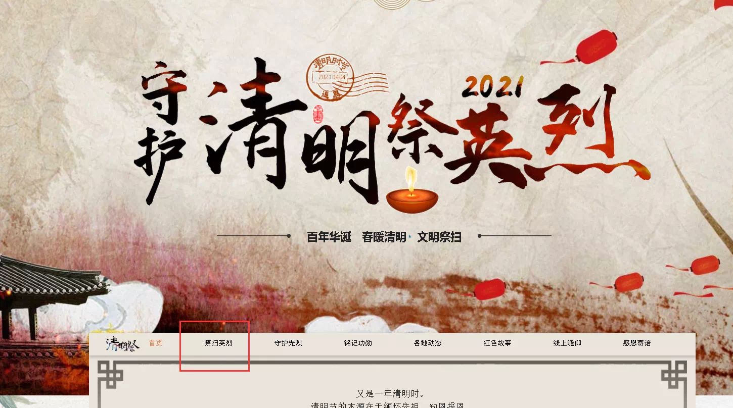 2、進(jìn)入網(wǎng)站,點(diǎn)擊“祭掃英烈”。